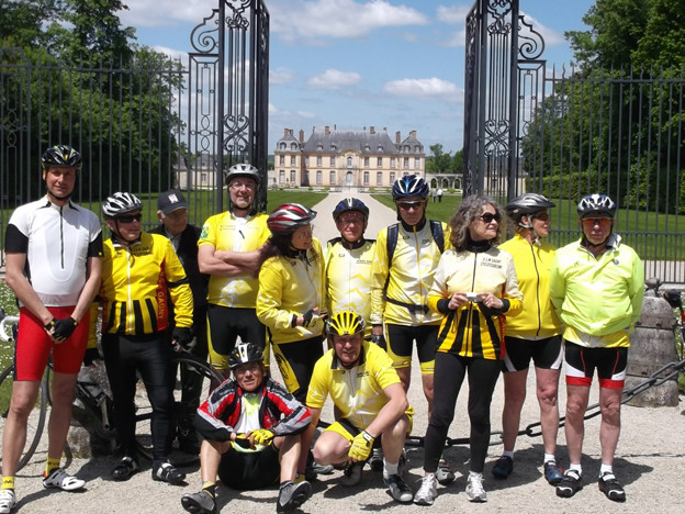 Après ce repos bien mérité et 100 kilomètres parcourus (126 pour d’autres), remise en route en passant au château de Lamotte-Tilly pour quelques photos du groupe.